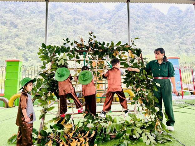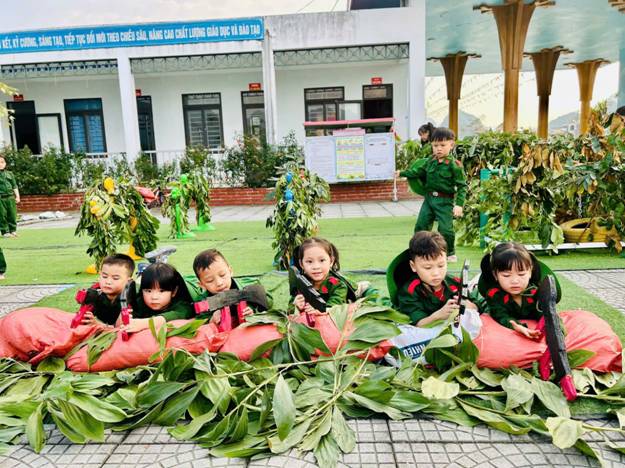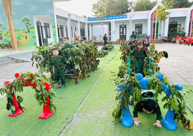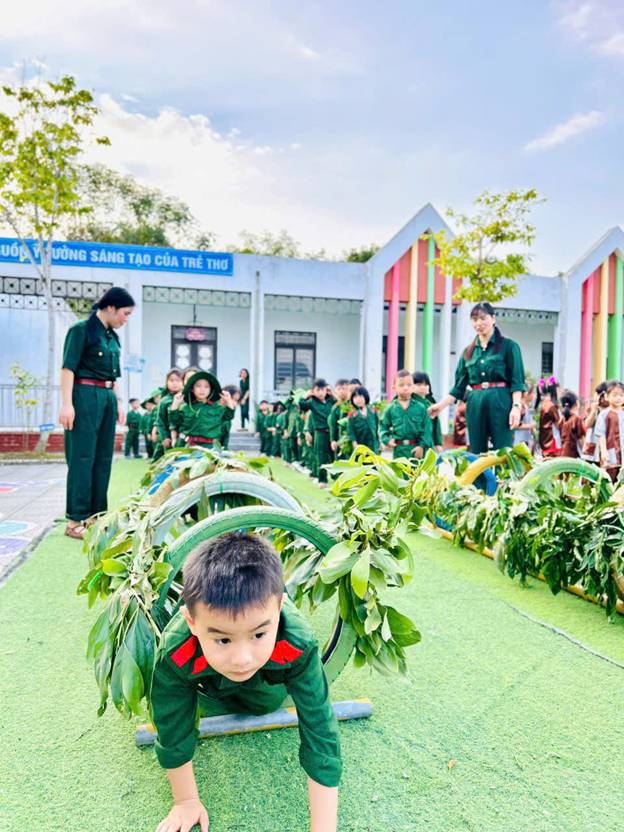 Trường Mầm non Cẩm Thạch tổ chức hoạt động trải nghiệm với chủ đề “Bé tập làm chú bộ đội”